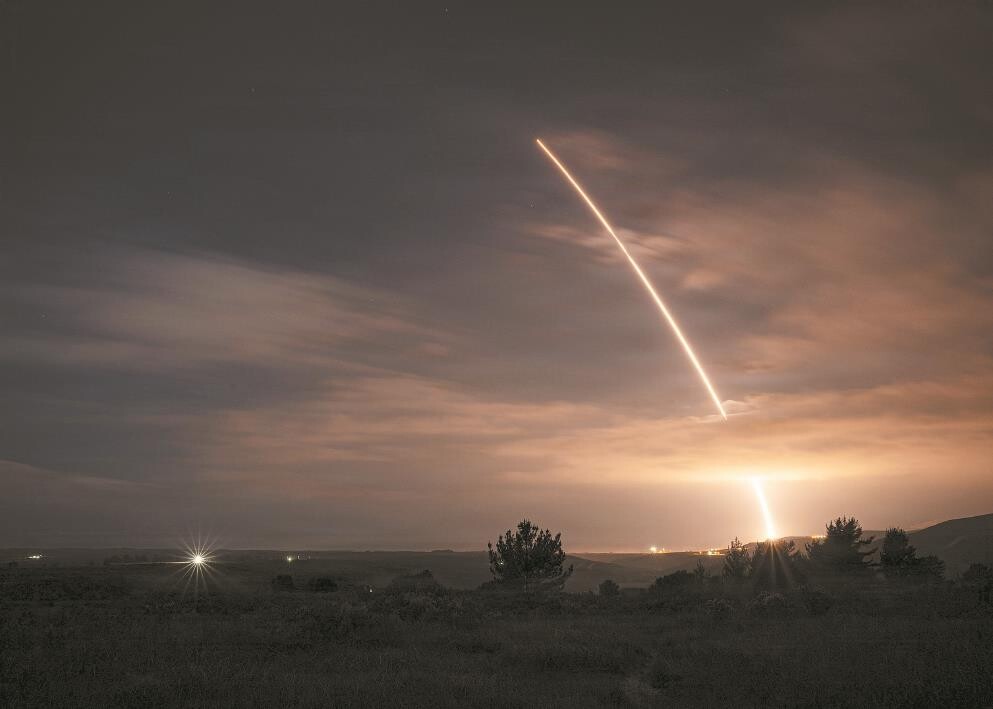 5日,美国加利福尼亚州范登堡太空军基地,一枚未携带弹头的“民兵3”洲际弹道导弹发射。视觉中国
