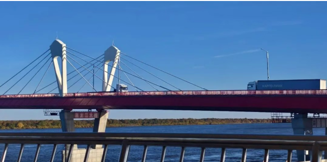 作为连接黑河市与布市的标志性建筑,黑龙江大桥实现了“中俄双子城”的直接互联与四季通关。“发货速度快,物流成本低,是中小商家最核心的竞争力。”沃尔克强调。(南方周末记者 王瑭琳/摄)