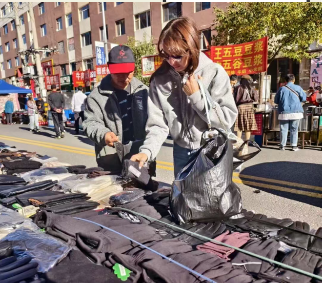 10月的清晨六点,黑龙江上的雾气还没散尽,韩德金已经蹲在黑河大早市的摊位前,把羊绒帽和手套一一摆正。