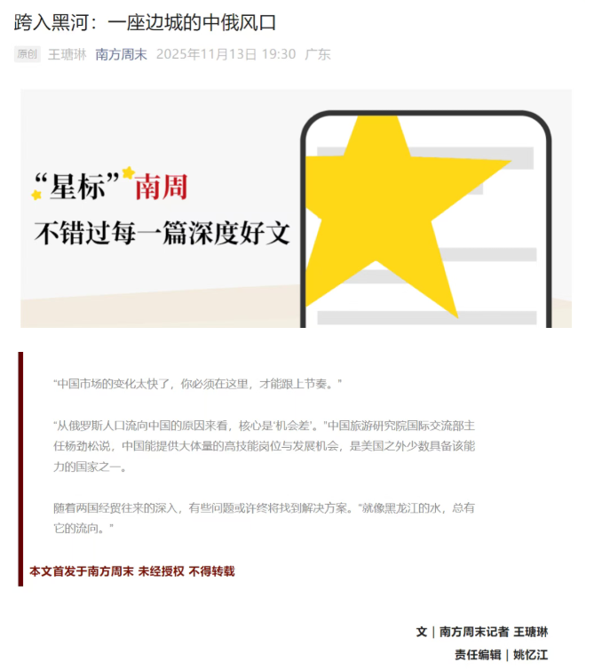 11月13日,华东师范大学俄罗斯与欧亚研究院副院长万青松接受南方周末采访,谈中俄边境贸易。