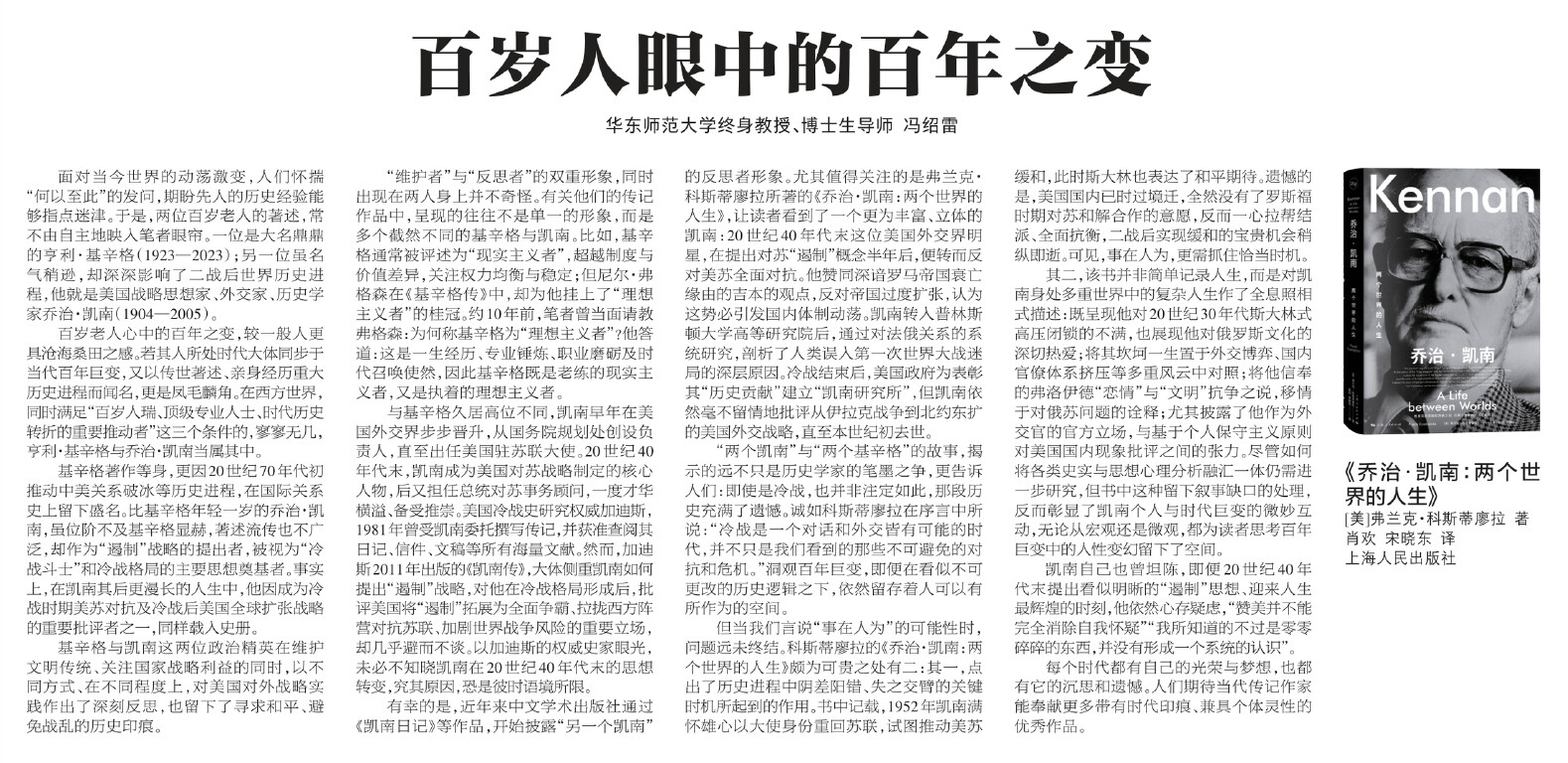 冯绍雷教授《解放日报》发文 解读《乔治・凯南:两个世界的人生》